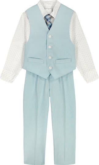 Your little one will be looking dapper as can be in this special-occasion set featuring a button-up shirt and a coordinating vest, tie and pants.
