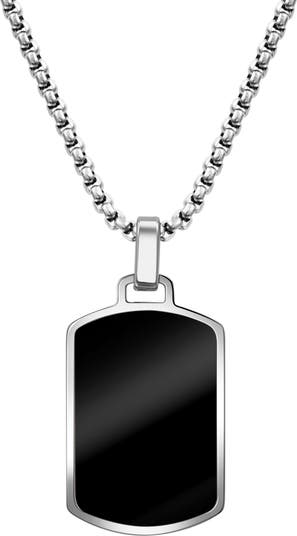 Take your everyday look to the next level by layering on this stainless steel necklace that suspends a dog-tag pendant centered with colorful resin.