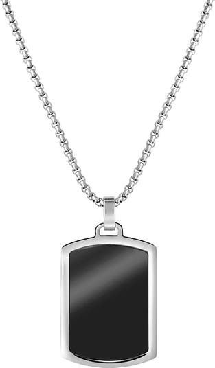 Show off minimalist style with this box-chain necklace suspending a dog-tag pendant crafted from durable stainless steel in plating of your choice.