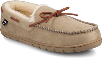 Ultrasoft faux-fur lining helps keep your feet warm in this slipper crafted from supple leather.