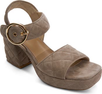 Quilt stitching adds just the right amount of retro character to a breezy platform sandal grounded by a bold block heel.
