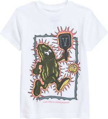 Spice up their game with this cheeky cotton T-shirt featuring a fiery pickle smashing it on the pickleball court—it’s a whole dill of fun!