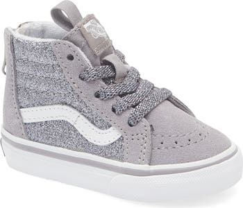 This iconic skate sneaker gets a fun upgrade for cool kids with a glittery finish, built-in ankle support and a signature waffle-grip sole plus a convenient back zip for easy on and off.