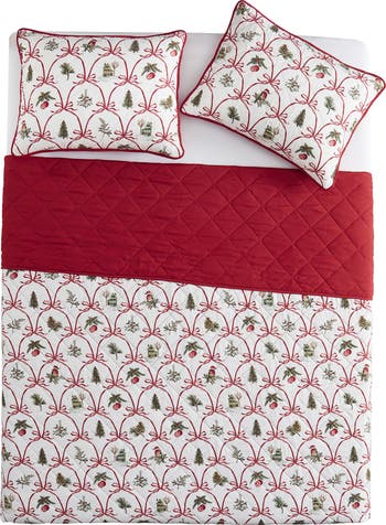 Bring Christmas cheer to every part of your home with this festive bedding set of a comforter and matching shams covered in seasonal greens and elegant bows.