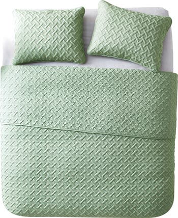 Add soft texture and unique dimension to your bedroom d cor with the VCNY Home Nina Embossed Basketweave Quilt Set, which features an embossed basketweave pattern in your choice of a variety of solid colors. Lightweight, durable, and irresistibly soft, this solid bed set is made of 100 microfiber fabric and is machine washable. Each quilt set includes a quilt and shams (one sham in Twin set) for a coordinated look.