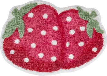 Add a sweet touch to your bathroom decor with this plush bath mat in a charming strawberry design.