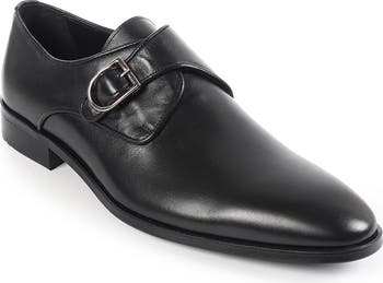 A sleek monk strap buckle sharpens the look of this smooth leather shoe.