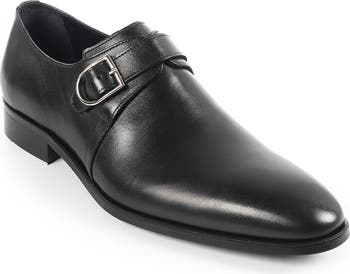 A slim monk strap bridges the vamp of this comfort-cushioned loafer handmade from smooth leather.