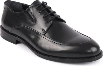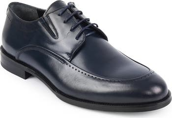 A cushioned footbed brings superior comfort to a rich leather derby trimmed with a slim line of perforations along a classic apron toe.