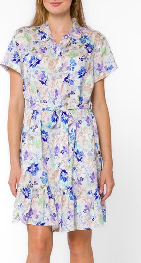 A matching tie defines the waist of a patterned shirtdress cut from sustainable fabric that's lightweight and comfy to wear even as the temp rises.