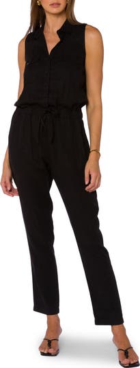 Effortless all‑in‑one style shines in this sleeveless jumpsuit complete with a cinching drawstring waist.