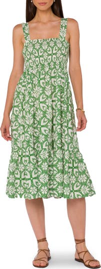 Flowy and flirty, this floral midi dress features a smocked bodice, tiered skirt and an empire waist for a touch of romance.