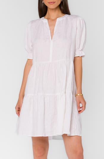 A linen-forward blend ensures you stay comfy and cozy in a casual dress cut with a tiered skirt to inspire endless swaying.