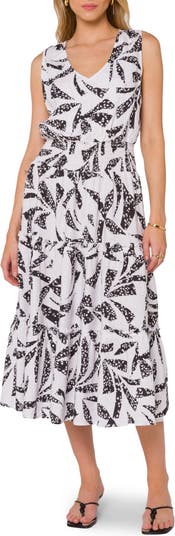 V-Neck Sleeveless Ruffle Midi Dress