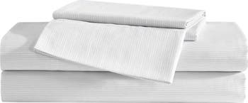 Crisp and lightweight, this all-season sheet set is made from breathable etched-stripe cotton that softens wonderfully with every wash for lasting comfort.