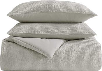 A puckered texture lends a unique appearance to this duvet set that instantly transforms your bedroom decor with contemporary charm.