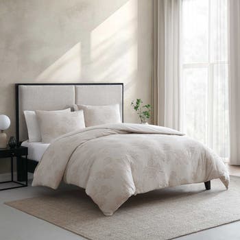 Strong, durable cotton ensures long-lasting use of a duvet set charmed by richly textured flower motifs that give depth and dimension to your modern bedroom decor.