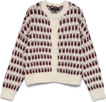 Stay warm in this soft, woolly button-front cardigan featuring textured stitches and dropped shoulders for an ultracozy feel.