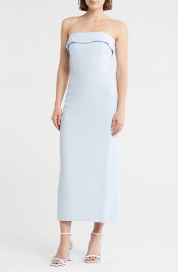 A night out on the town is incomplete without this eye-catching body-con dress fashioned in a shoulder-baring silhouette with a flowy popover.