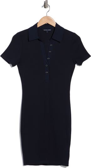 This cotton blend ribbed dress skims the figure and features a spread collar with short sleeves for a streamlined, polished look.