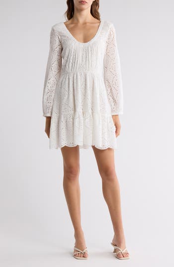 Delicate eyelet embroidery adds charming texture to this breezy cotton dress detailed with a scoop back and drop-waist skirt, perfect for effortlessly stylish warm-weather days.