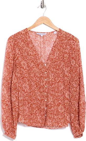 A charming floral print swirls across this long-sleeve button-up shirt cut from soft, lightweight silk in a flowy silhouette.