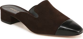 A squared-off cap toe and low block heel balance a sophisticated mule fashioned with a loafer-inspired topline for modern appeal.