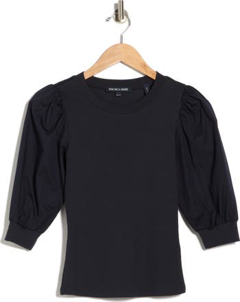 Soft puff sleeves add volume to this classic crewneck top finished with ribbed cuffs and made from a comfortable cotton‑blend fabric for everyday polish.