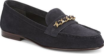 Polished chain hardware adds a timeless and sophisticated flourish to this essential suede loafer.