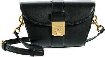 Defined by its sculptural silhouette, this supple leather bag illuminated with a crest-engraved lock closure is a modern interpretation of the classic shoulder bag. An interior card pocket ensures organization while its removable shoulder strap allows it to be easily carried as a clutch.