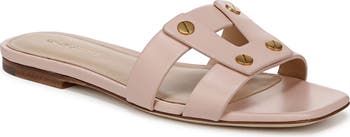 Polished studs bring a hint of industrial edge to this outfit-elevating slide sandal.