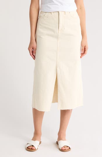 A creamy-white wash gives an understated update to this midi skirt cut from nonstretch denim with a front slit for ease in every stride.