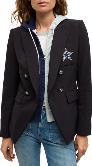 Done in collaboration with the NFL, this dickey jacket is cut from wrinkle‑resistant scuba knit and features your favorite team’s logo, decorative buttons, and NFL‑emblem lining. The team dickey is compatible with any Veronica Beard jacket and is made from soft French terry in your team’s colors.