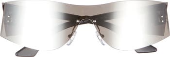 A rimless design amps up the irregular silhouette of these cool sunglasses detailed with gleaming square logo accents.