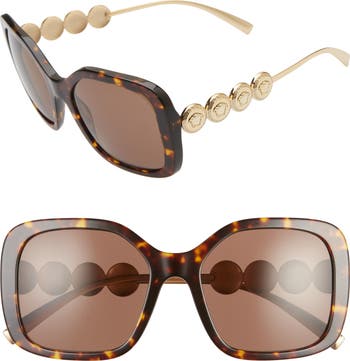 Gleaming Medusa-head medallions detail the temples of bold Italian-made sunglasses fit with tinted UV-protective lenses.