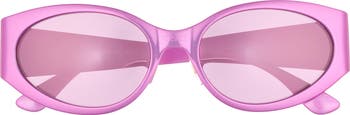 Step into the future with these sleek silver sunglasses fashioned in an oval silhouette.