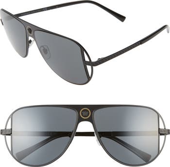 Greek key details and a distinctive logo embellishment add signature style to these modern sunglasses offered in an intensely cool, flat front silhouette.