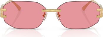 Frameless oval sunglasses are punctuated by signature logos at the start of each temple and fitted with UV-protective lenses.