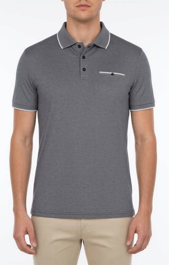 A tipped collar, cuffs and chest button-welt pocket give sharp definition to this cotton-blend knit polo that keeps you comfortable wherever the day takes you.