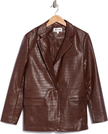 Croc embossing lends depth and dimension to a faux-leather blazer designed to top your look with cool attitude and a bit of an edge.