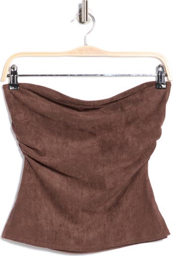 Side ruching lends dimensional intrigue to a tube top crafted from faux suede to soften your elevated looks.