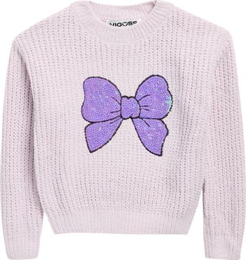 Supersoft chenille meets sparkle in this sweater featuring a sequined bow accent for your trendsetting kiddo.