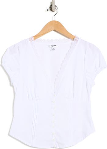 Delicate lace trim adds a touch of romance to a milkmaid top that's made of pure cotton to make it a comfy choice on casual or elevated outings.