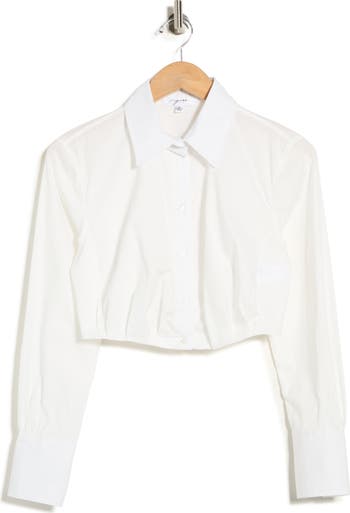 Soft pleats lend textural intrigue to a crisp cotton top cut to an abbreviated length to show off some skin.