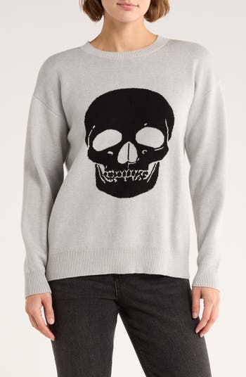 Casual comfort meets edgy charm in this crewneck sweater featuring a skull-knit design front and center.