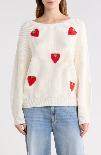 You'll look oh-so-sweet in this rib-knit sweater covered in crochet strawberries.