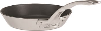 Ideal for sautéing, searing and browning, this nonstick fry plan features three-ply stainless steel and aluminum construction for superior heat transfer. The Windsor-pan–inspired design features conical, angled sides allowing more room for evaporation and a flat bottom, making it ideal for induction surfaces. The Eterna nonstick coating is PFOA-free and the ergonomic handle stays cool to the touch.