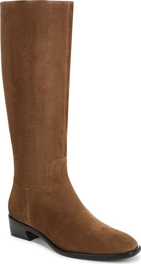 A clean, minimalist silhouette with a classic squared toe emphasizes the timelessness of this knee-high riding boot set upon a traction-enhancing rubber sole.