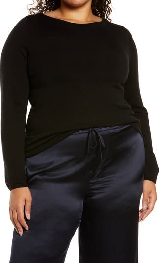 A staple sweater delivers luxe grace with its ballet neckline and rich yarn blend enriched with wool and cashmere.
