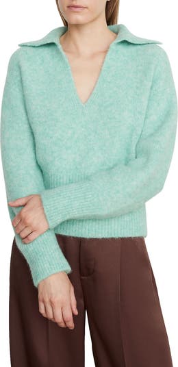 A fuzzy sweater gains extra feel-good points with a knit fabrication featuring recycled polyamide and responsibly raised wool.